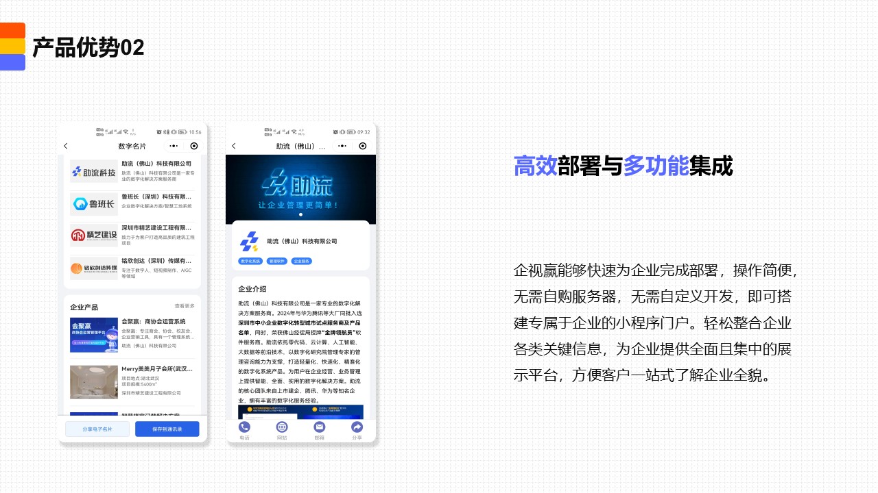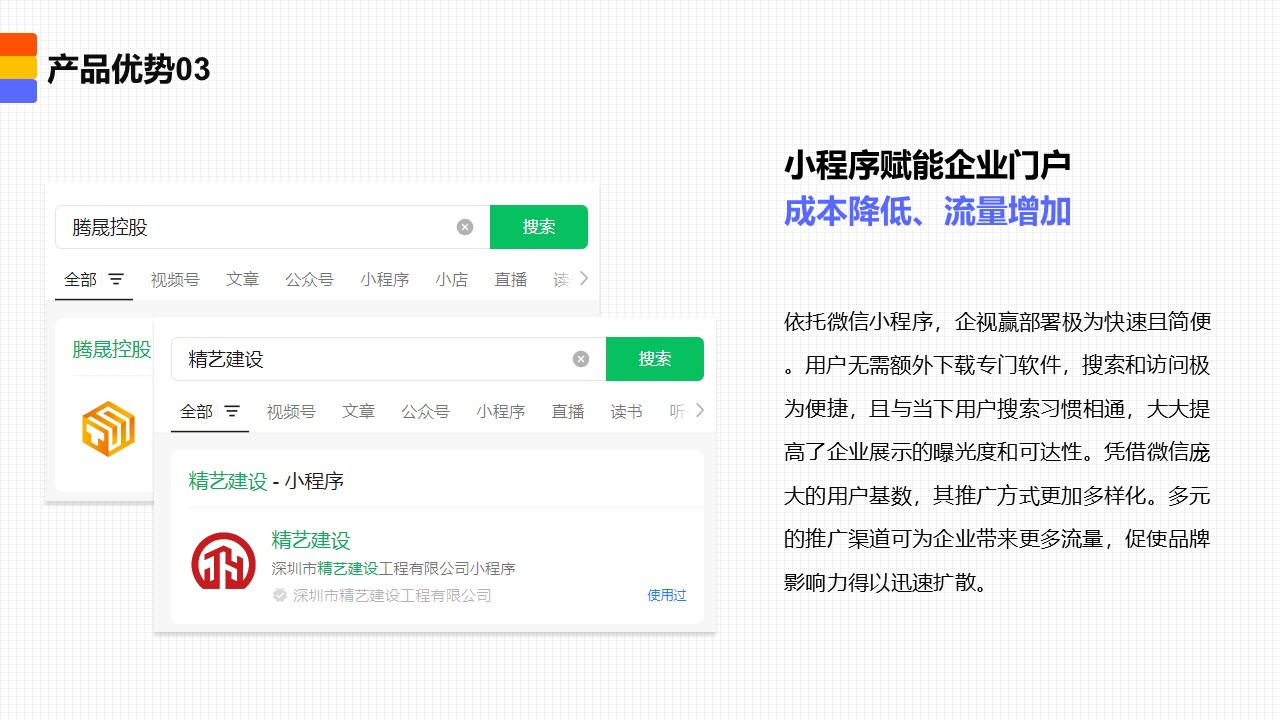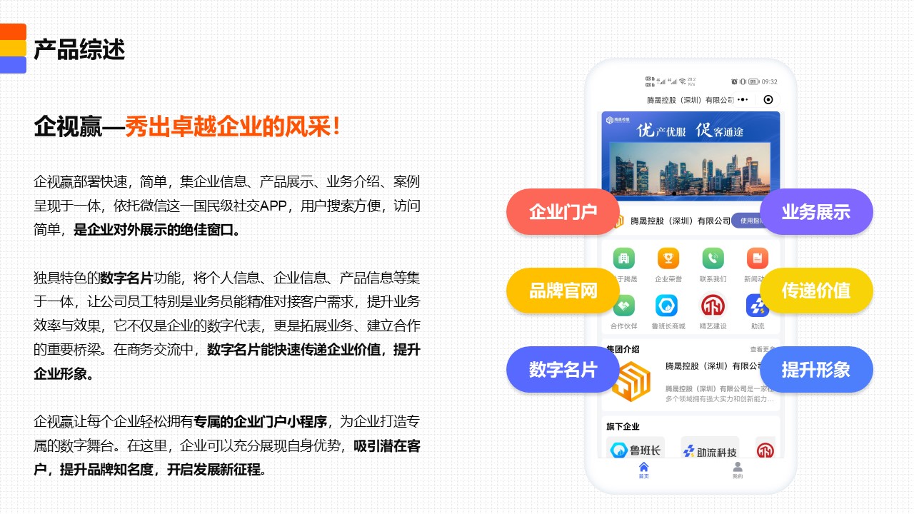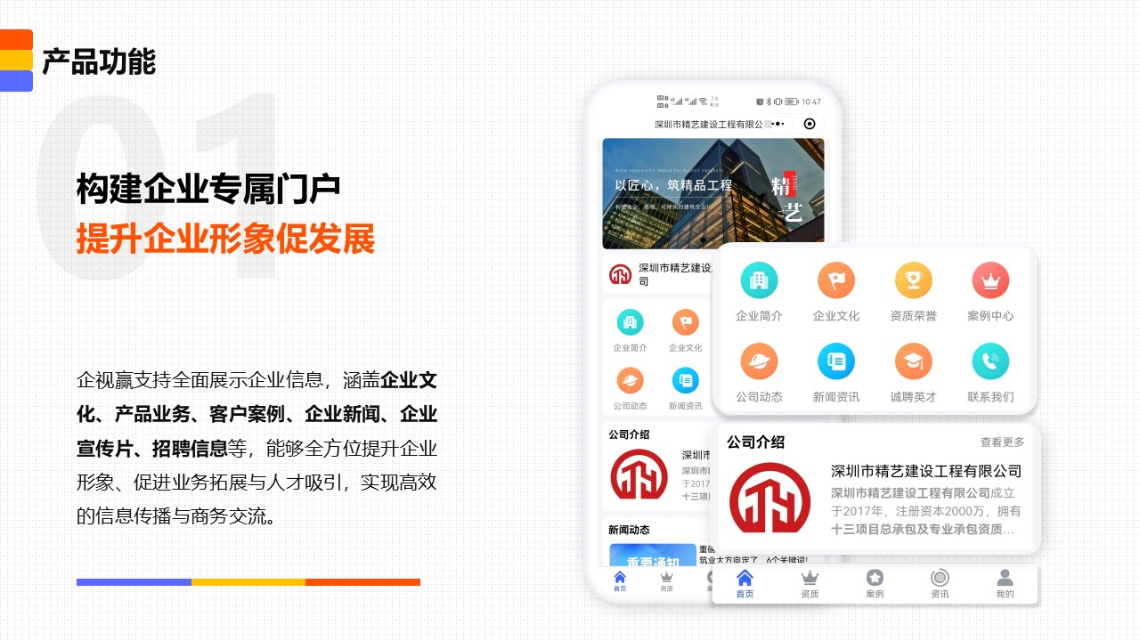 企视赢让每个企业轻松拥有专属的企业门户小程序,为企业打造专属的数字舞台。企业可以充分展现自身优势,吸···
